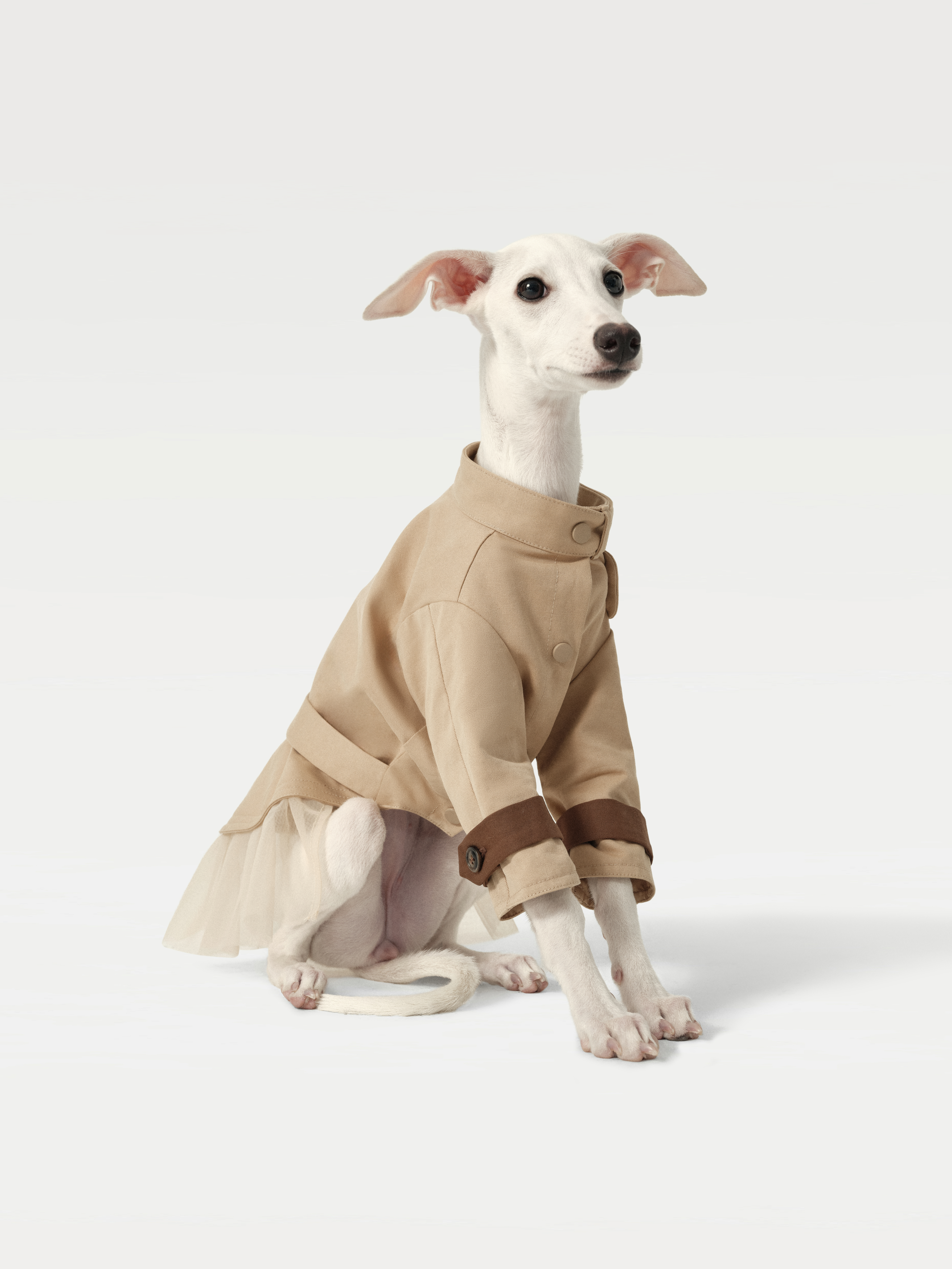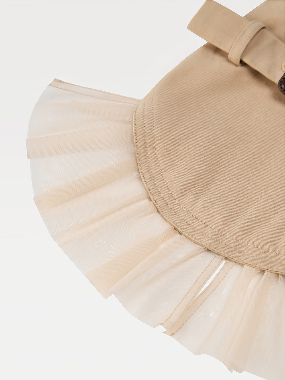 From sunlit city streets to quiet garden paths, this coat drifts with gentle grace. A cinched waist shapes every step, while a delicate tulle skirt sways like a whisper of the sea breeze — crafted for pets who explore with light-hearted elegance.