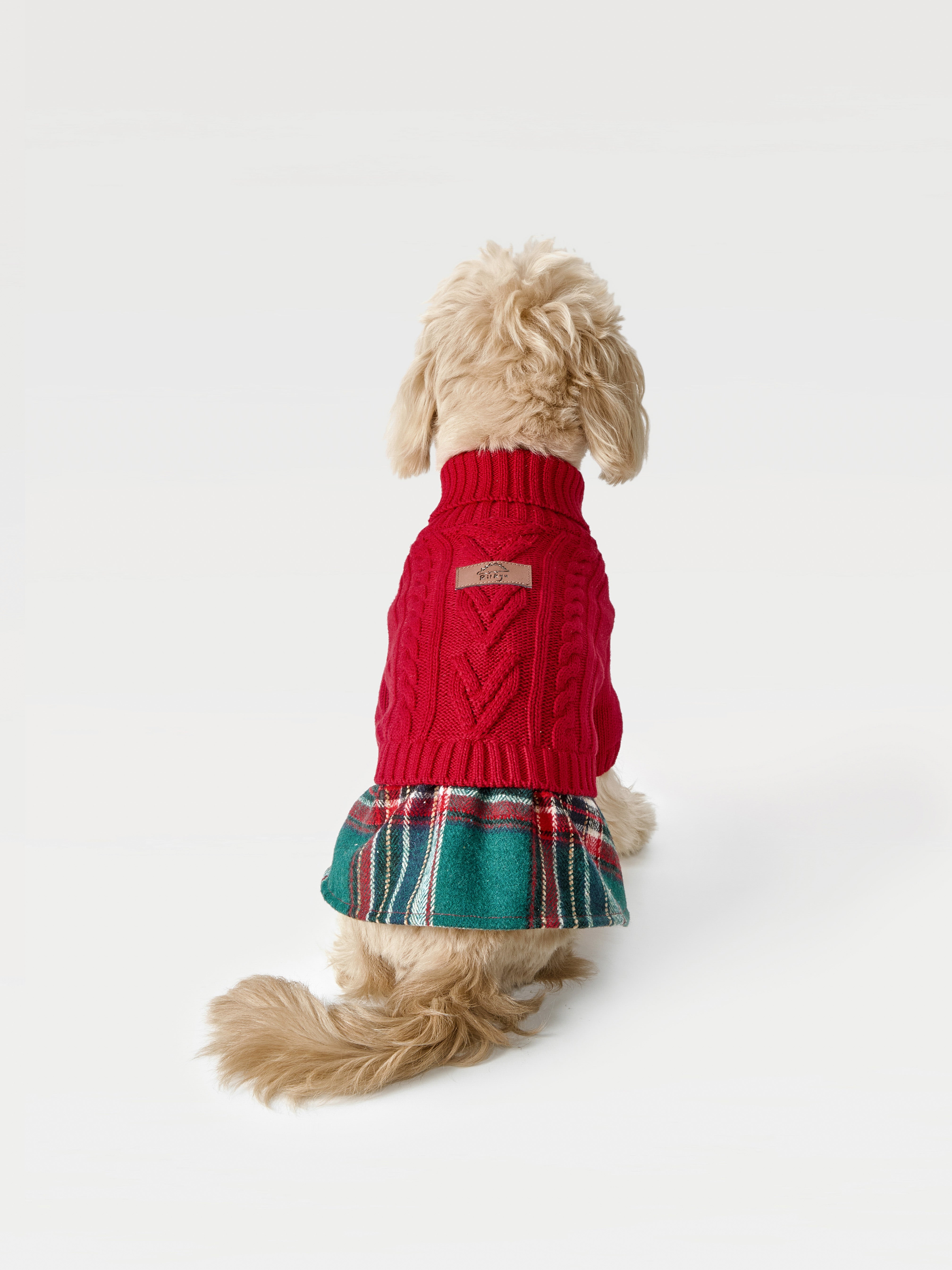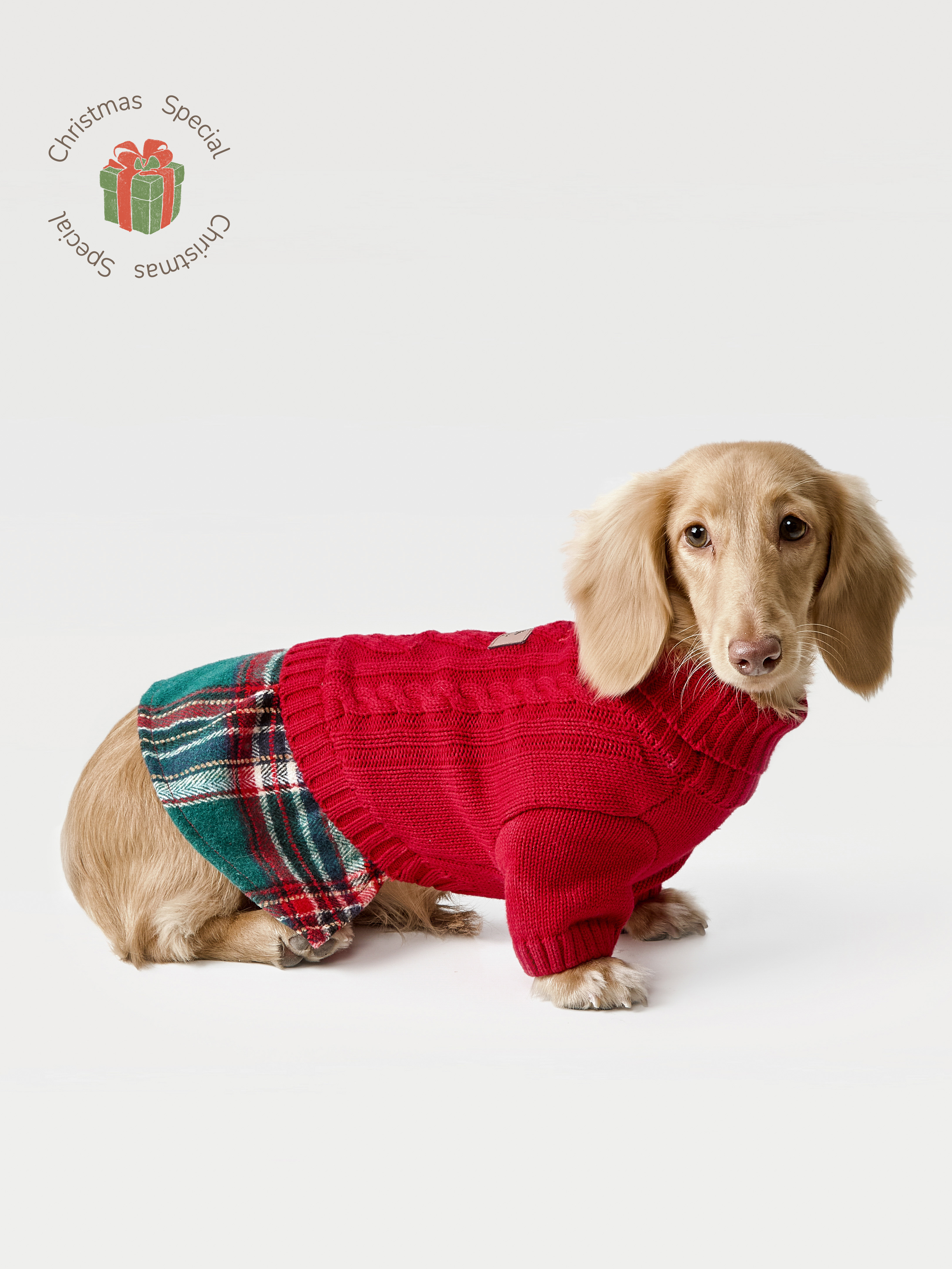Our Christmas Sweater Dress carries the spirit of the season in its classic festive colours and gentle plaid pattern. The soft knit texture wraps your pet in warmth and comfort, while the thoughtful details create a quiet holiday charm. It is made for pets who love to stay close during the most tender moments of the season.