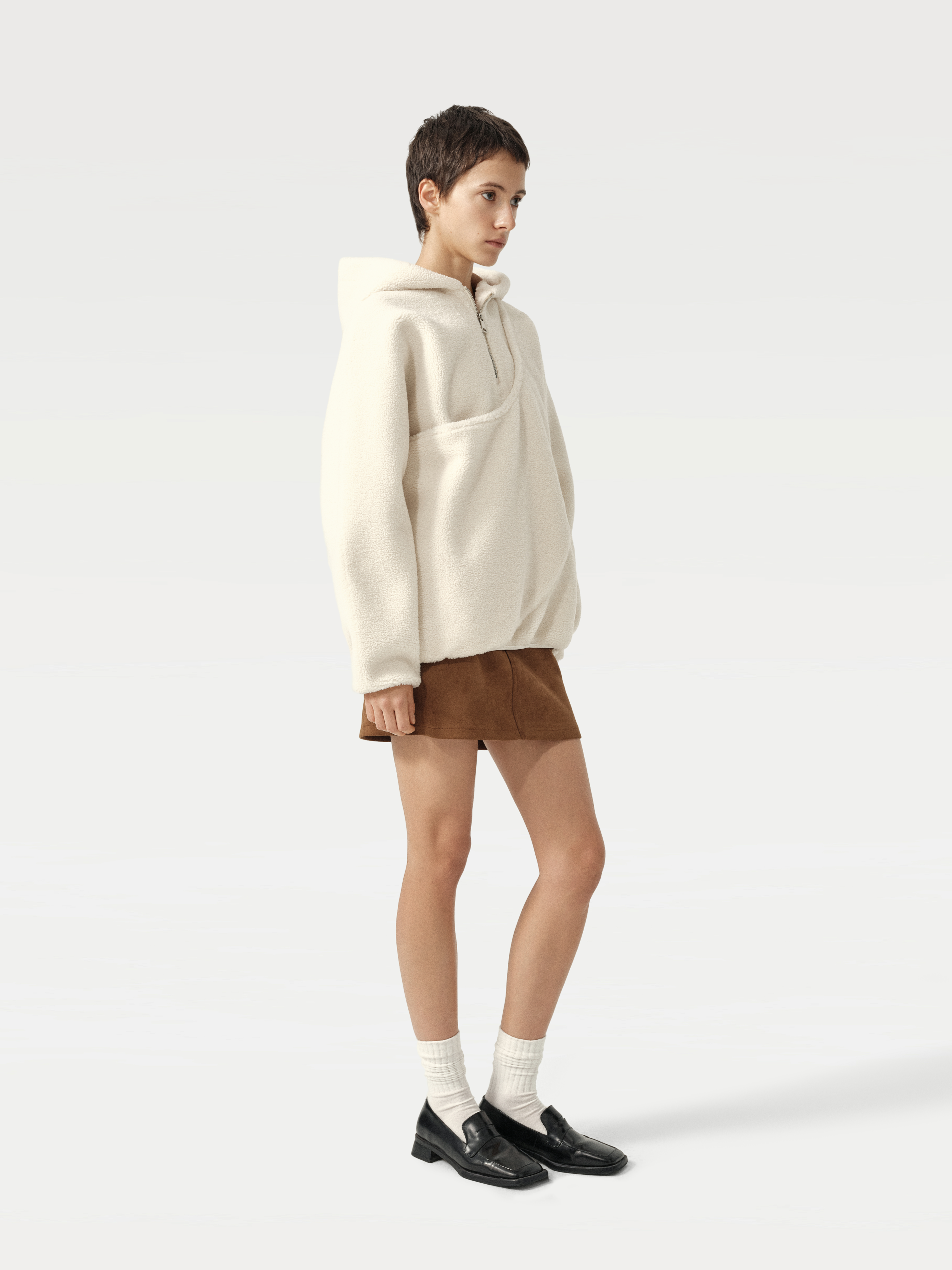 The female model is 175cm/5'73" and wears a size S.