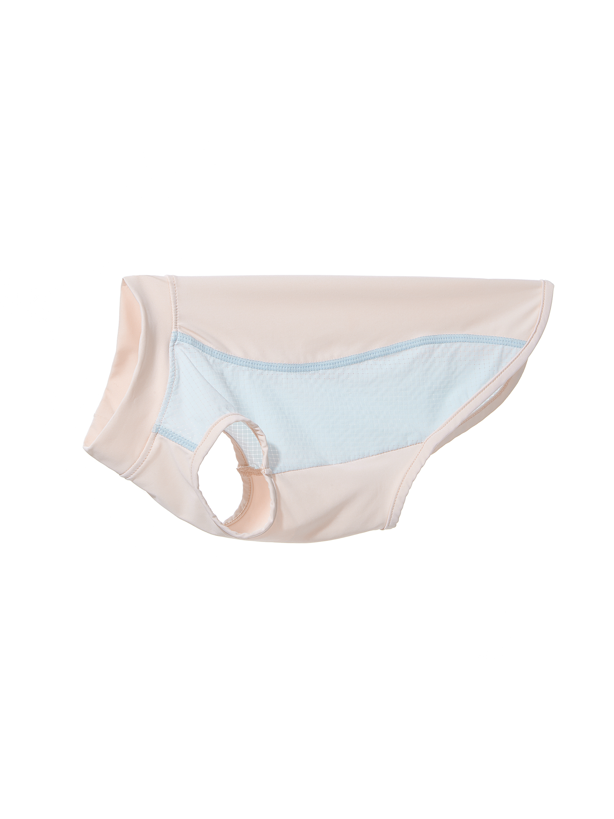 A quiet breath of summer, soft luminous tones meet a contrast mesh panel for effortless airflow. Flowing lines bring a sense of motion, while cooling sun protective fabric keeps every moment light and easy.