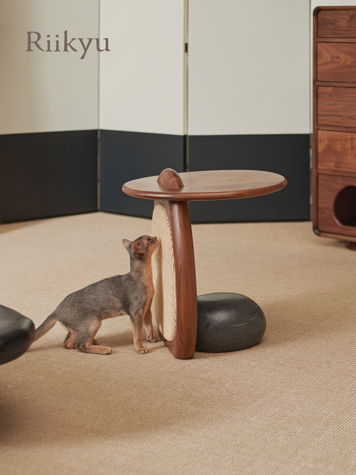 It is a shared furniture for cats and owners. While owners enjoy the side table, cats can relieve stress on the scratching board. This opens up new possibilities for human-pet interaction.