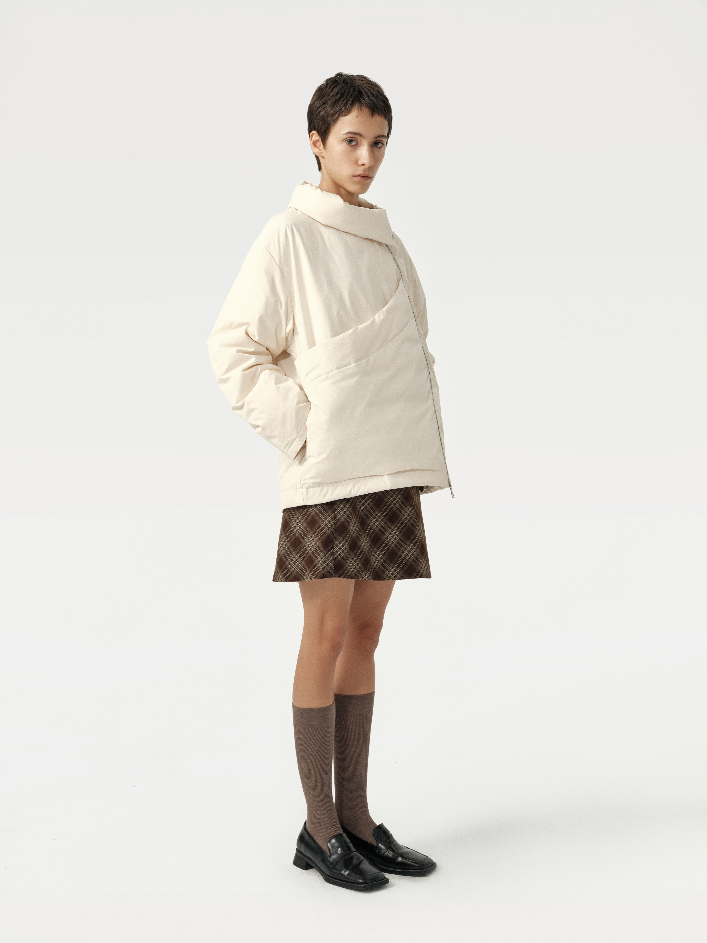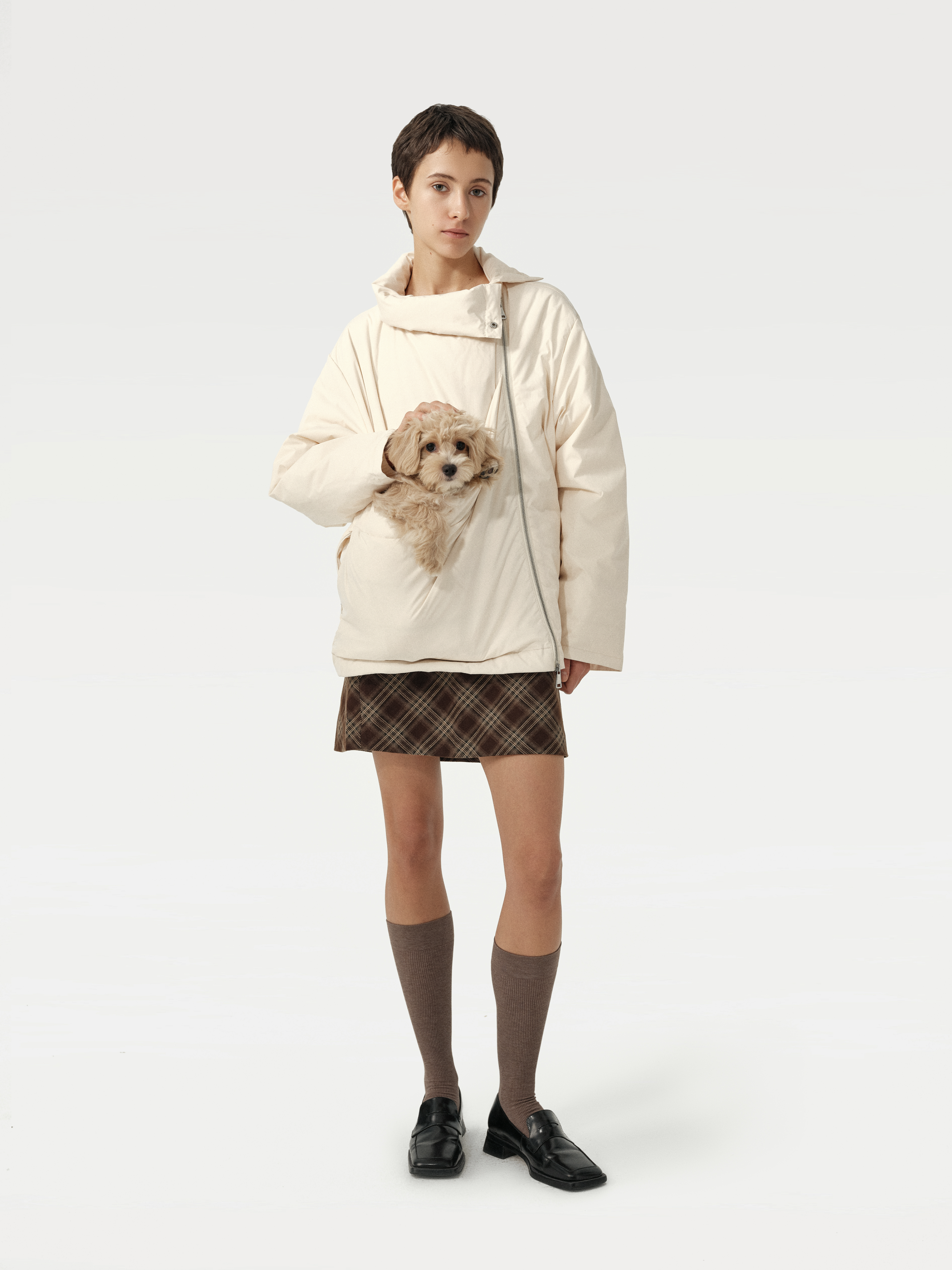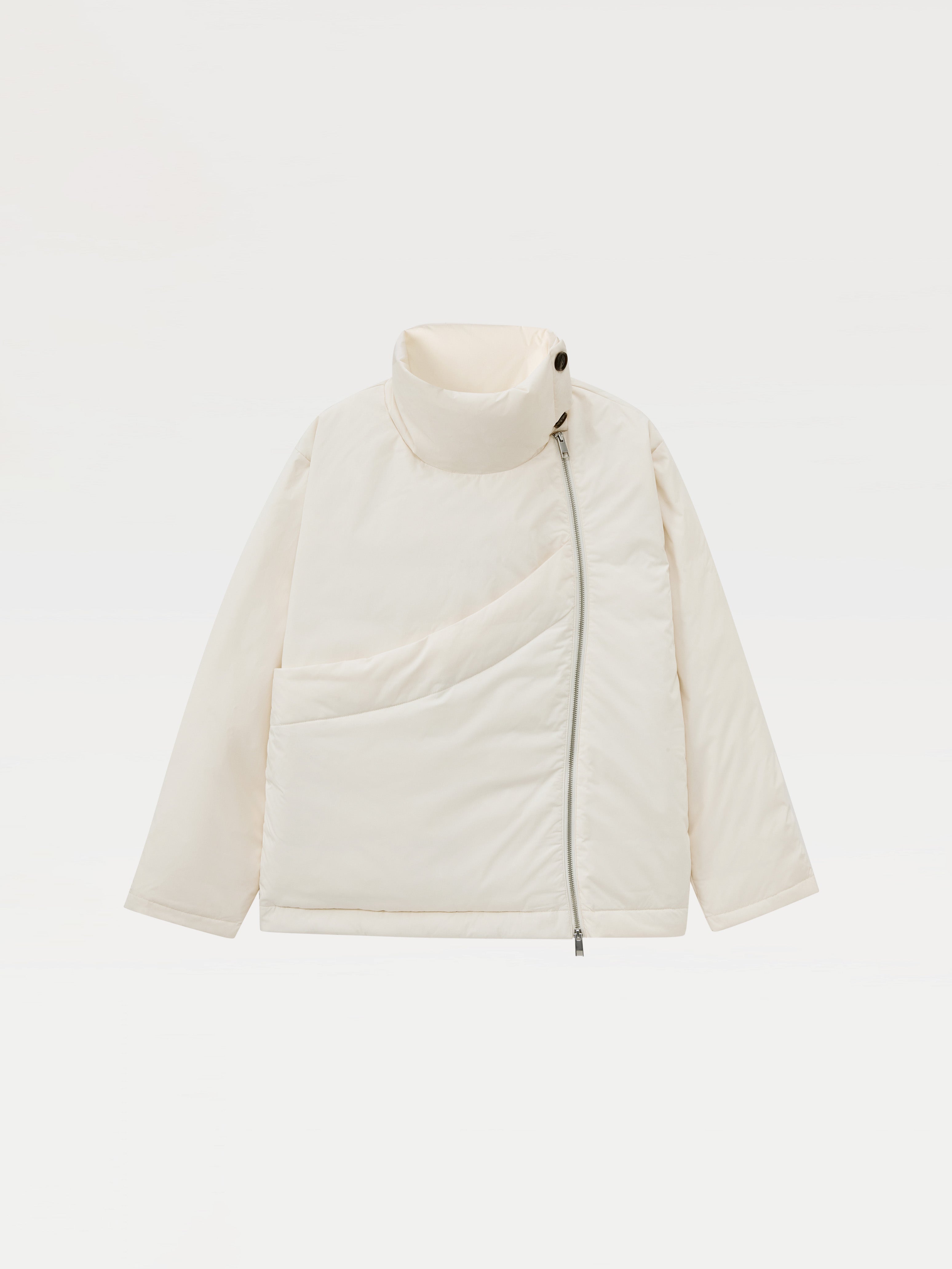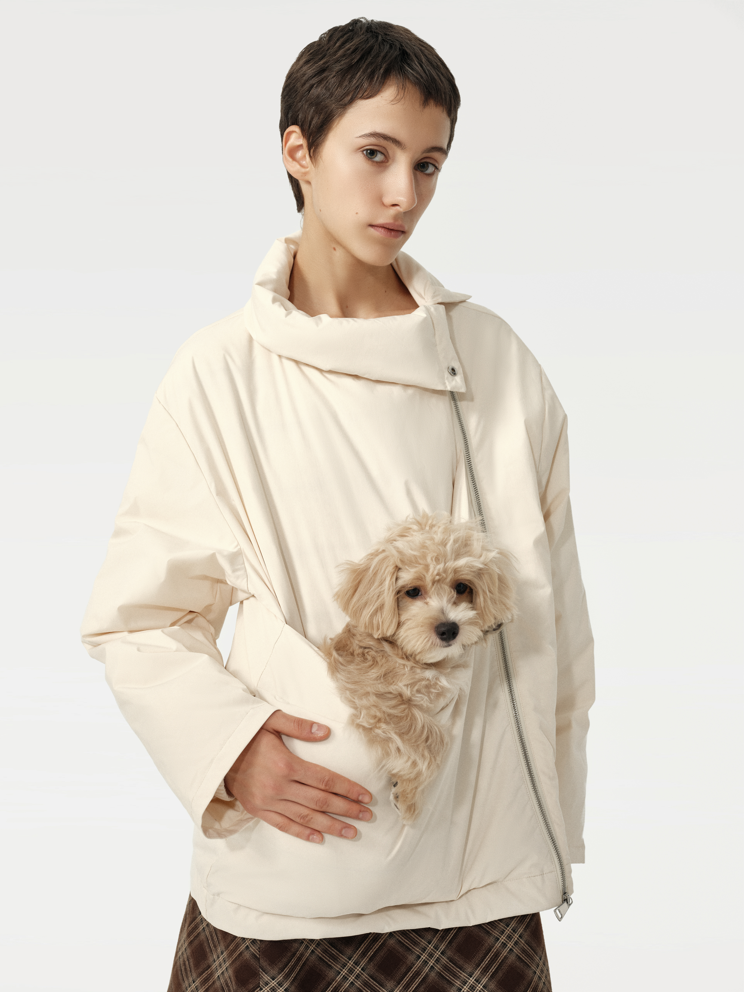 【White】Kangaroo Pouch Unisex Asymmetric Puffer Jacket